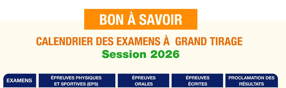 Calendriers des examens (CEPE - BEPC - BAC) 2026